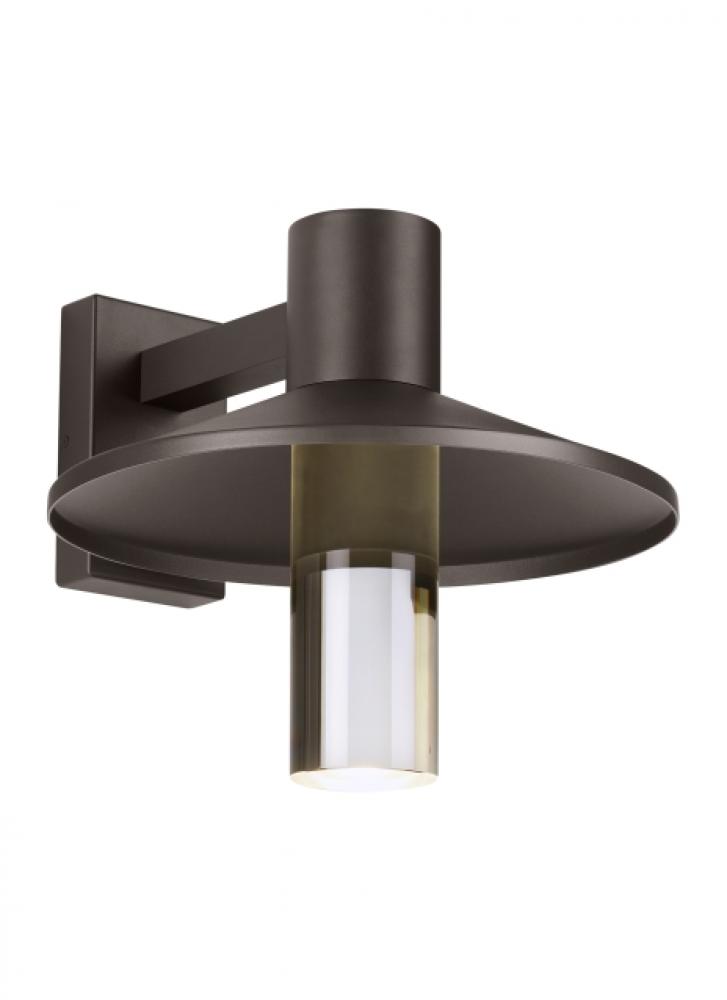 The Ash outdoor wall by Sean Lavin for Visual Comfort Modern is a modern take on the classic industrial-style light fixture. The Ash features a sleek metal shade and clear diffuser that’s ideal for creating a streamline column of light from under the shade. For added convenience in light output, the diffuser is removable to limit uplight for Dark Sky compliance. Available in modern finishes. Integrated energy efficient lamping makes for a long-lasting trusted source of light.