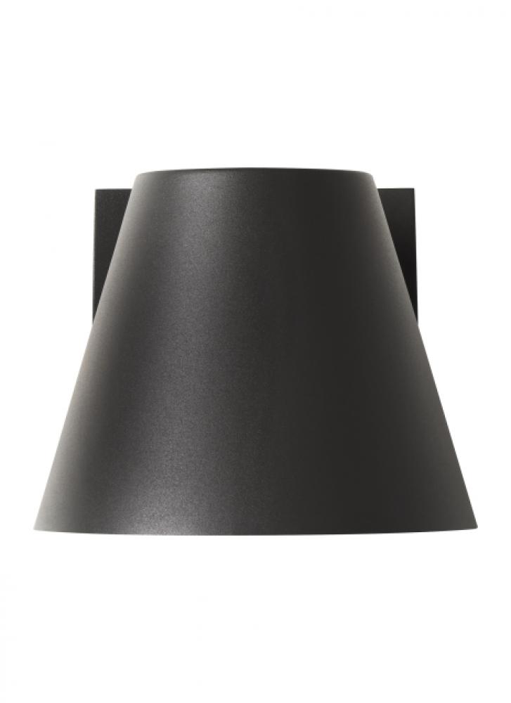 The classic and sleek silhouette of the Bowman LED outdoor wall sconce by Sean Lavin makes it suitable for both indoor and outdoor applications. Clean lines and mid-century modern design inspiration characterize the die-cast aluminum body which houses a powerful, long-lasting LED light source tightly controlled for down light only, yet supplying significant illumination for even the darkest nights. The UV stabilized, frosted acrylic lensing diffuses the LED light to create an even glow. Available in modern finishes and multiple sizes.