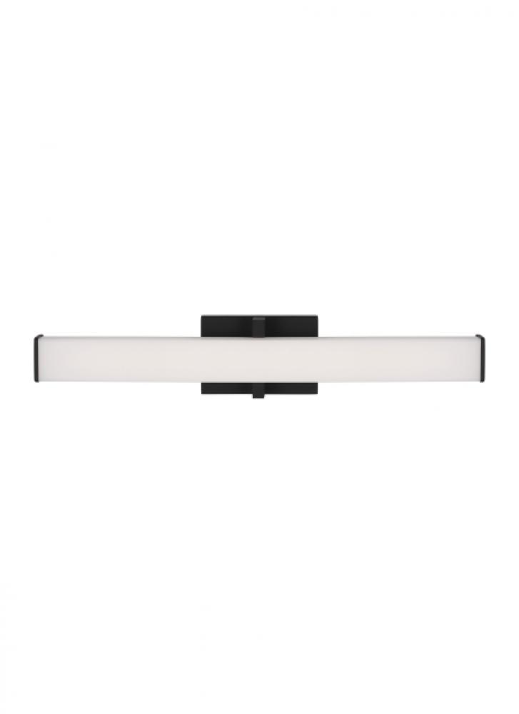 Sleek and stylish best describe the Ellis 24 bath vanity light by Sean Lavin. This contemporary light fixture features a clean design style that’s offset by a number of die cast metal end-caps that add a pop of sophistication. Light pleasantly fills the bathroom and illuminate’s vanities as light spills from three sides making for excellent light distribution. The Ellis is available in modern finishes and can be mounted vertically or horizontally for added design versatility. Also included in the Ellis family is the larger Ellis Bath 36 and the Ellis Wall, simply search for the Ellis Bath 24 to find its closest relatives. Available lamping options include energy efficient integrated LED, all lamping options are fully-dimmable to create the desired ambiance in your special space.