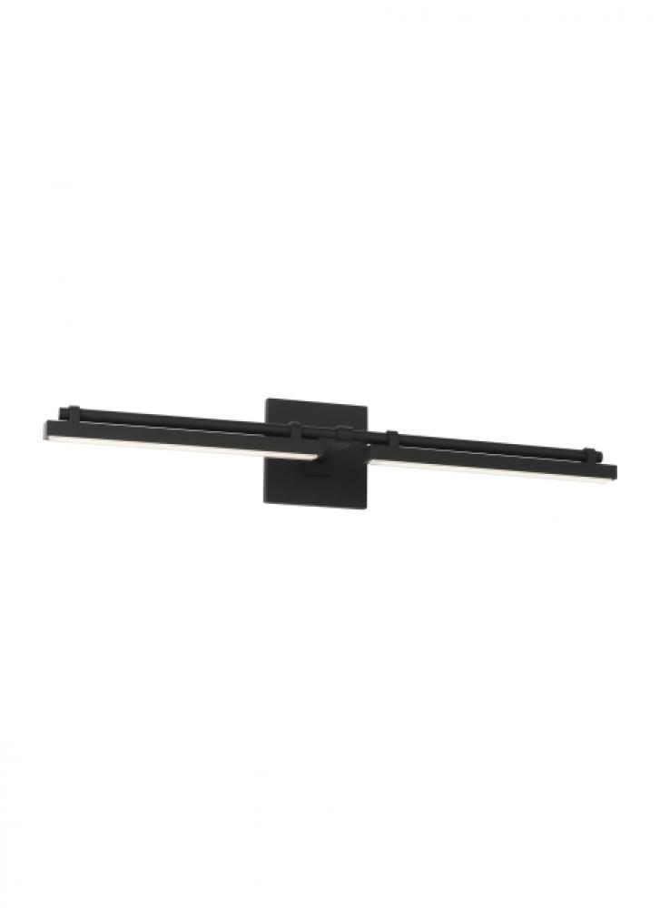 The Kal Medium Vanity by Sean Lavin for Visual Comfort Modern makes a bold statement with its structural design of mechanical features and modern finishes. The integrated LED light is wrapped in a frosted crystal diffuser adding radiance and functional light to a bathroom or any space.