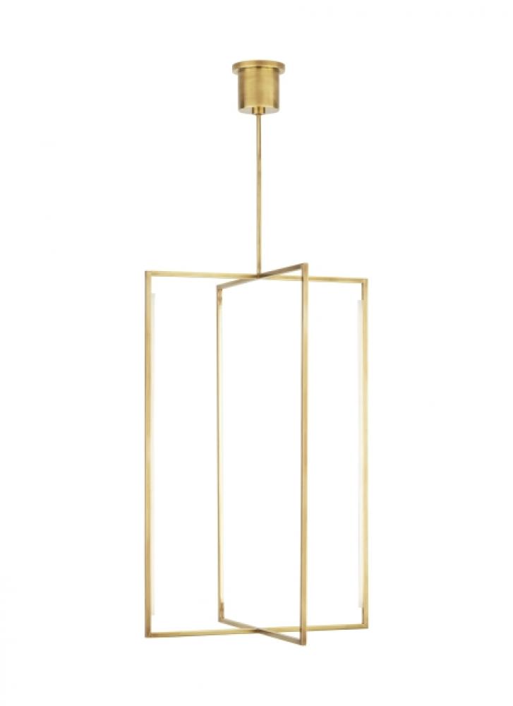Celebrating the influence of geometry by linking thin rectangular frames, the Kenway 42 Pendant by Sean Lavin for Visual Comfort Modern is designed with strips of inward-facing LED light guide panels providing generous amounts of illumination in the surrounding area. Available in modern finishes and generously sized at 42” H with additional sizes available for a coordinated look.