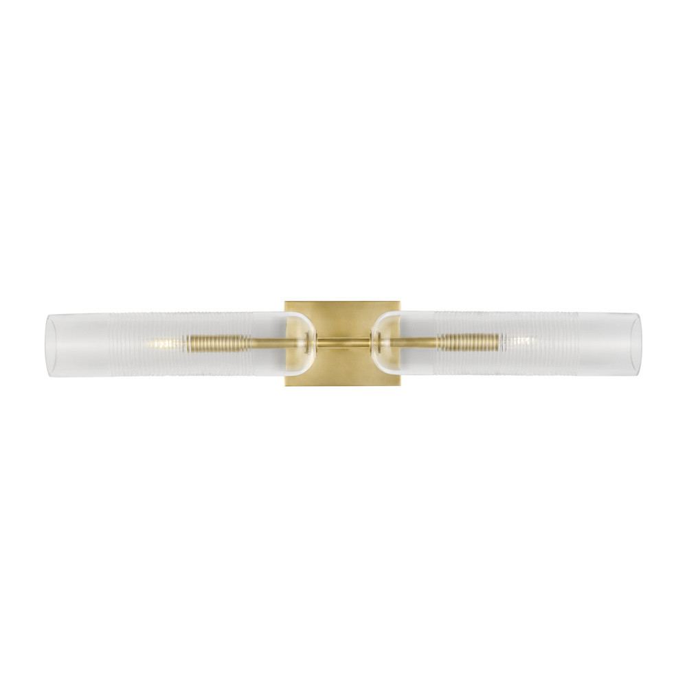 Featuring a combination of solid brass and ribbed glass, the Leano series effortlessly contrasts linear forms and angles with rounded cylindrical shades. The precision-cut ribbed glass lends a subtle visual detail that softens the illumination. The Leano collection will create a sophisticated statement in a variety of spaces from dining rooms to bathrooms.