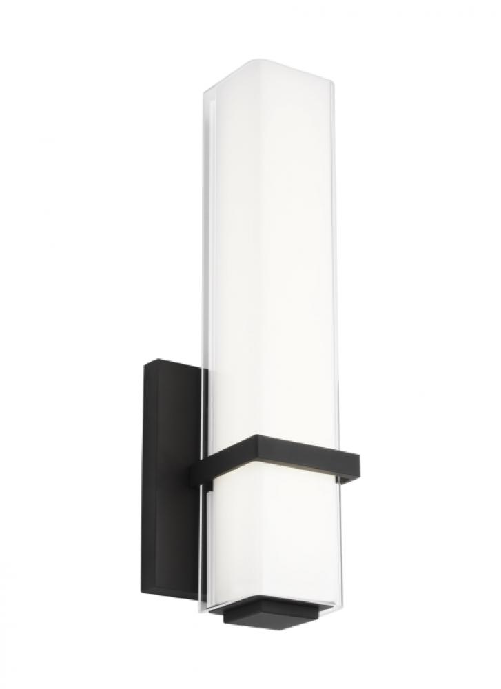 The Milan wall sconce by Sean Lavin is a modern rectilinear bath bar that features a clean and crisp design. The Milan is defined by the sharply enhanced crystalline dimension of the outer shade. A discreet metal band further enhances the simple elegance of this wall sconce. The Milan is available in on-trend finishes, with each finish further enhancing its contemporary style. The Milan bath bar ships with energy efficient integrated LED lamping, all lamping options are fully dimmable to create the desired ambiance in your special space.
