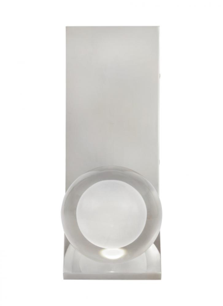 The Mina Wall Sconce by Sean Lavin for Visual Comfort Modern features an elegant sphere of pure optic crystal. This beautiful resting orb is laser-etched and further illuminated by a powerful firing LED hidden within the socket. With an outward bending backplate to angle the illumination, the Mina Wall Sconce provides general illumination in the surrounding space. Due to its contemporary and artistic design, Mina can be used in a range of lighting applications alongside coordinating Mina Pendants and Table Lamp. Available in modern finishes.