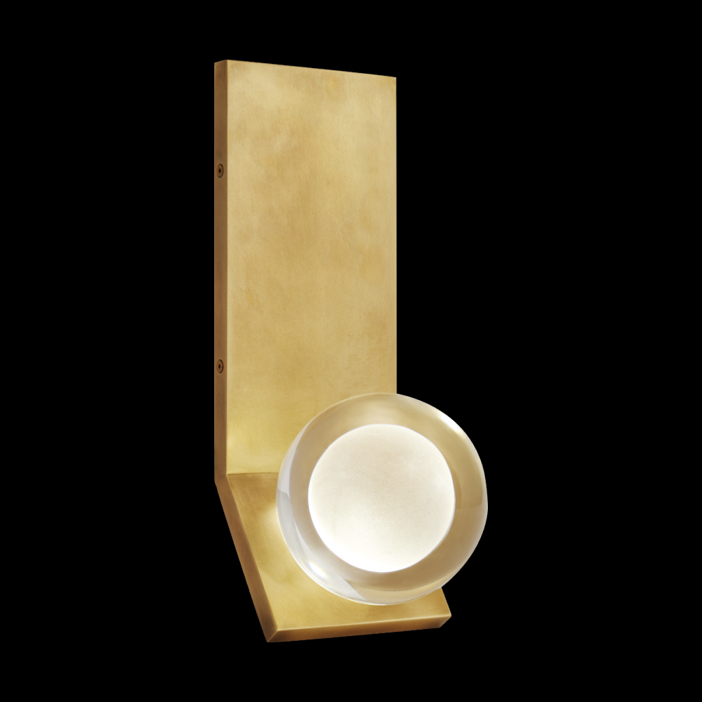 The Mina Wall Sconce by Sean Lavin for Visual Comfort Modern features an elegant sphere of pure optic crystal. This beautiful resting orb is laser-etched and further illuminated by a powerful firing LED hidden within the socket. With an outward bending backplate to angle the illumination, the Mina Wall Sconce provides general illumination in the surrounding space. Due to its contemporary and artistic design, Mina can be used in a range of lighting applications alongside coordinating Mina Pendants and Table Lamp. Available in modern finishes.