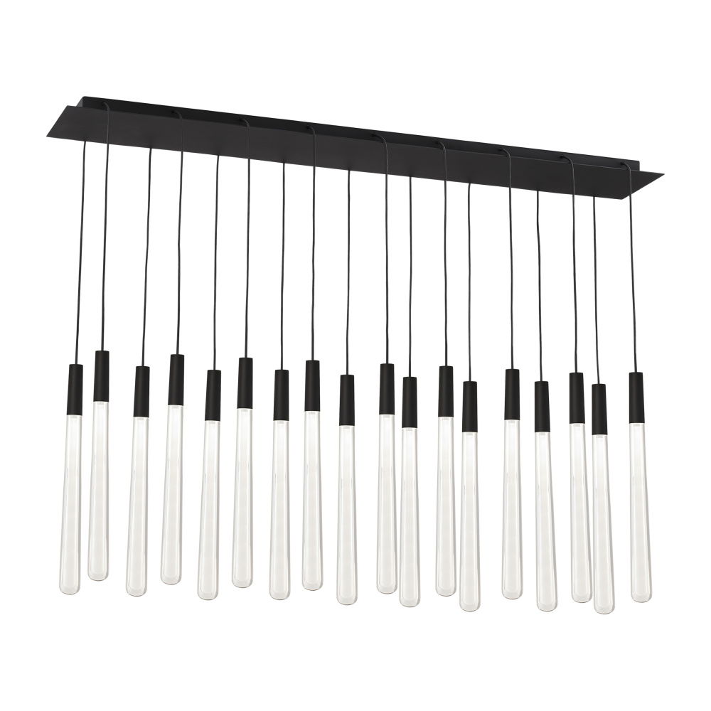 Sloped ceiling compatible and canopy ships with 9-feet of cable per pendant for customizable hanging height