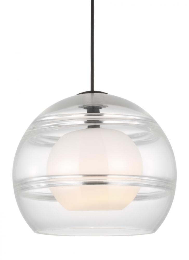 The large scale of the Sedona pendant light from Sean Lavin creates dramatic statement, particularly when installed with other varying sizes within the collection. While each transparent clear and transparent smoke glass orb is perfectly spherical and smooth on the exterior surface, the interior surface features gradually thickening bands of glass which are artfully crafted by talented artisans to add alluring visual interest to your space. Two, fully dimmable vintage tubular style LED lamping options are not only energy efficient, but also allow you to customize these pendant lights to your desired ambiance.