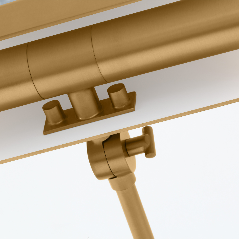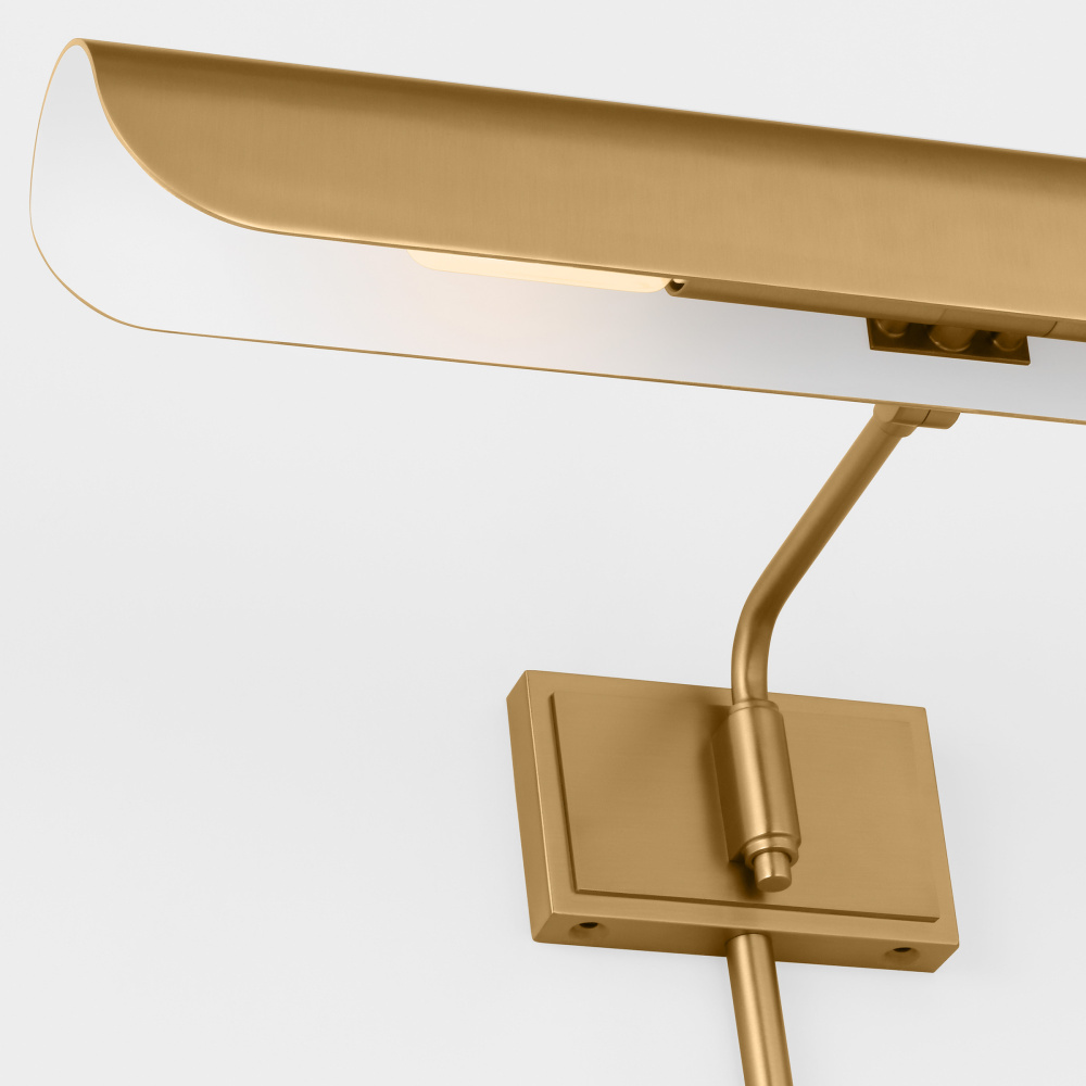 Transitional fixture with pivoting burnished brass steel shade will provide light to highlight any piece