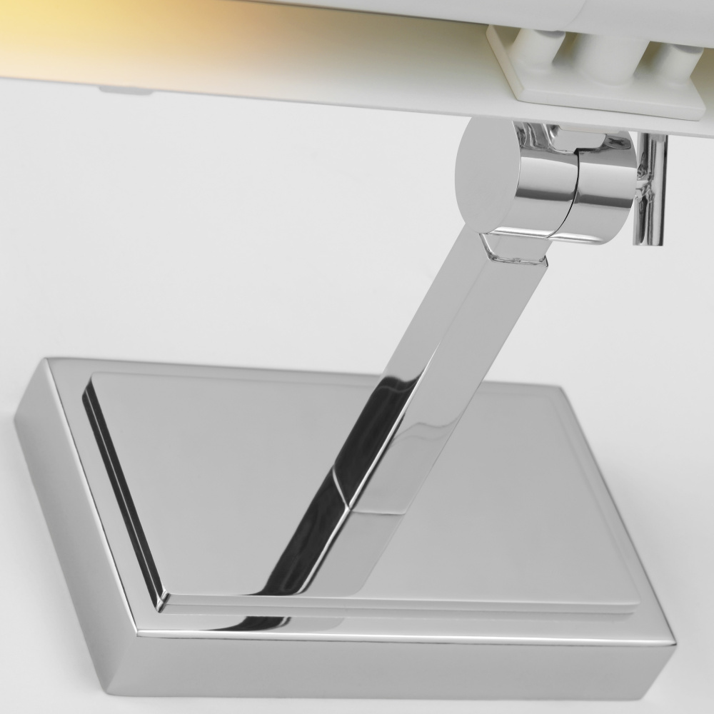 Sleek polished nickel steel shade pivots to provide light where desired