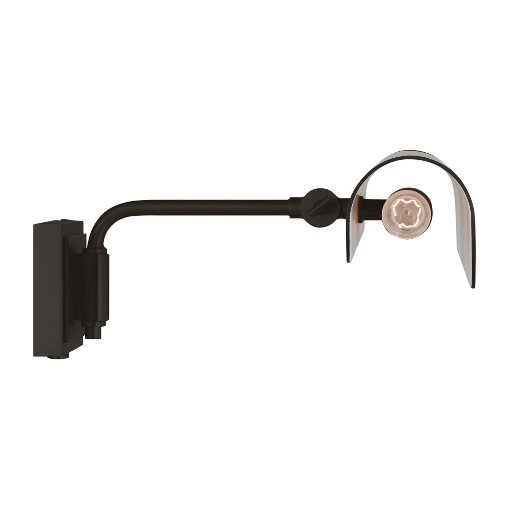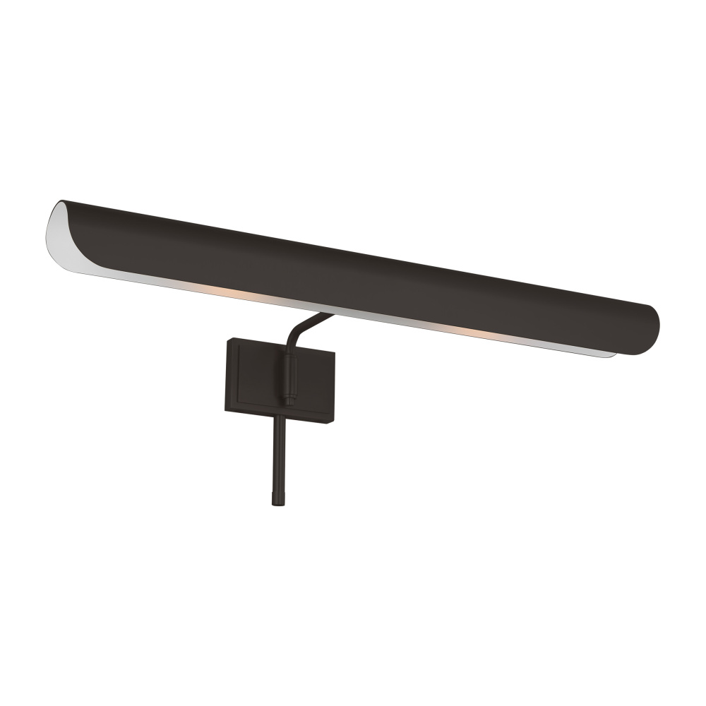 Inspired by a ship's outer hull, the Hull series by Chapman & Myers has a unique shade of these picture lights made from a single piece of metal bent into a cylindrical form. These picture lights have an open-ended design directing light both down and to the sides. A subtle horse saddle design and double barrel back-plate detail that pivots in the direction needed. Available in three sizes and two finish options.