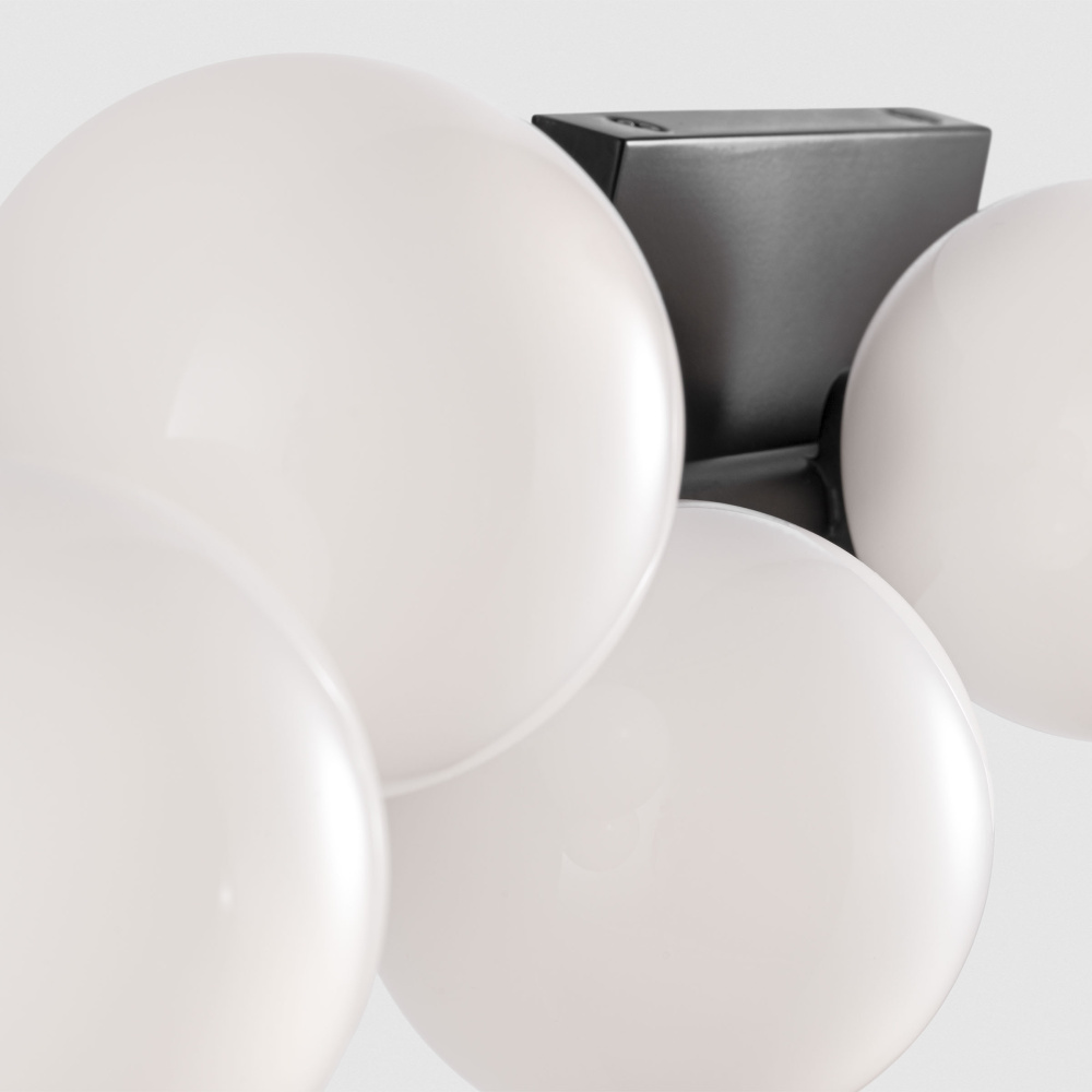 The Altair collection combines simple metal structures with elegant milk glass globes that draw inspiration from delicate water droplets. Elegant with a buoyant sensibility, the minimalist structures will create a refined statement.