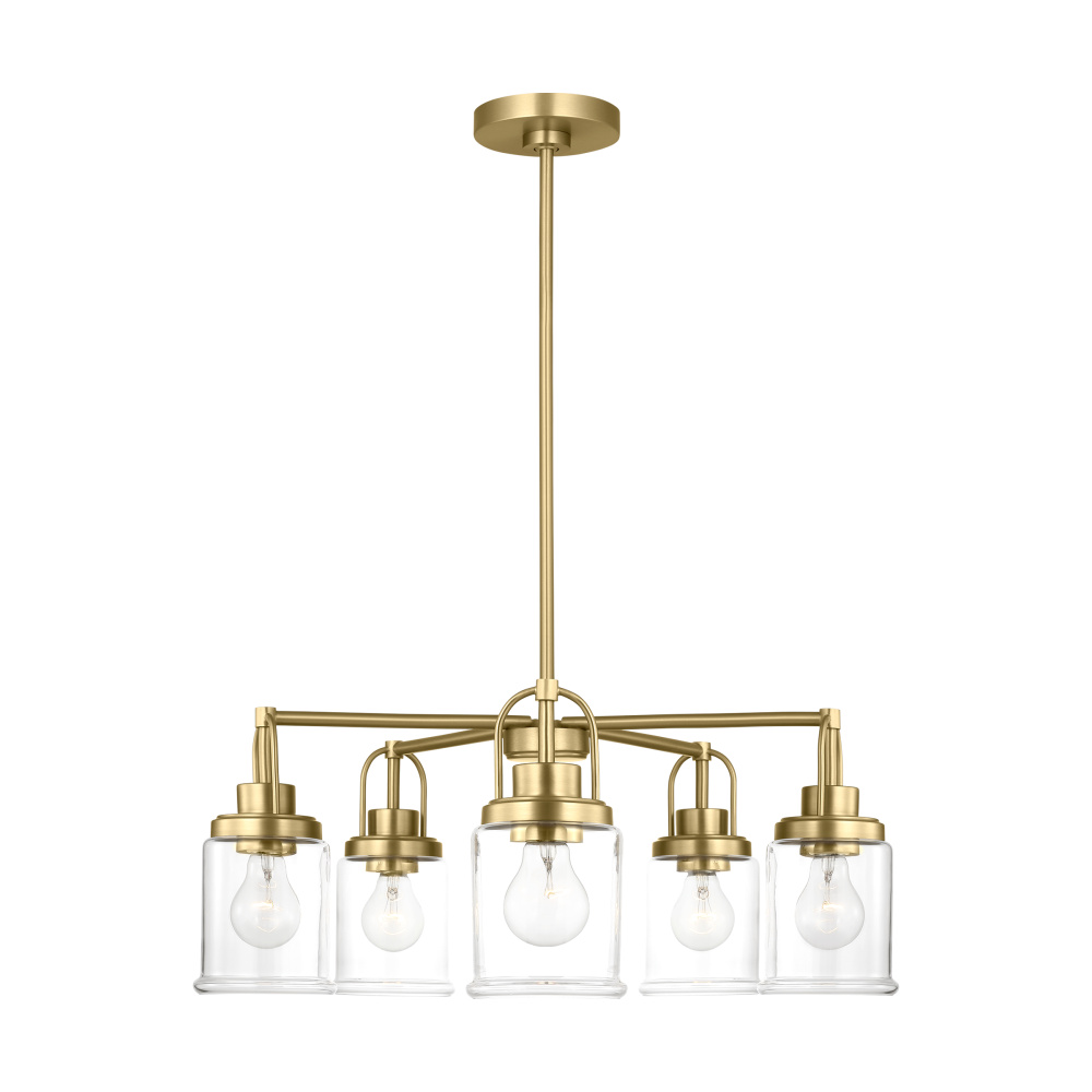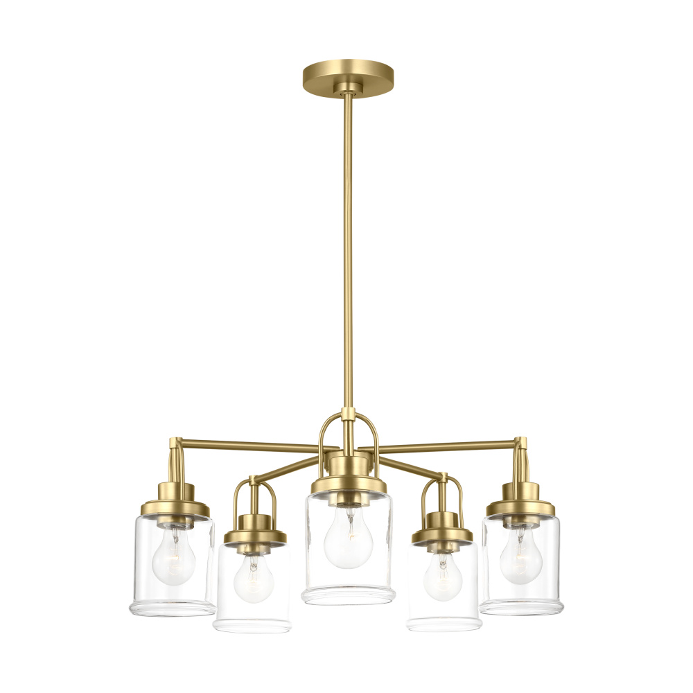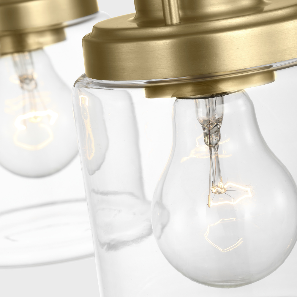 Crafted with Steel in a Satin Brass finish with clear glass shades