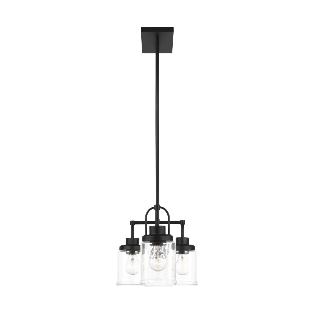 Crafted with Steel in a Midnight Black finish with clear glass shades