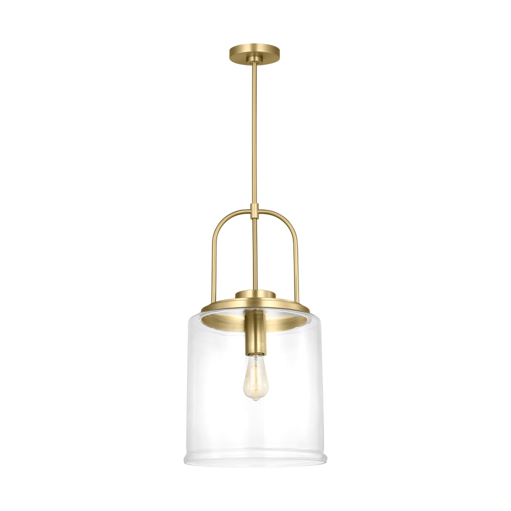 Crafted with Steel in a Satin Brass finish with clear glass shade