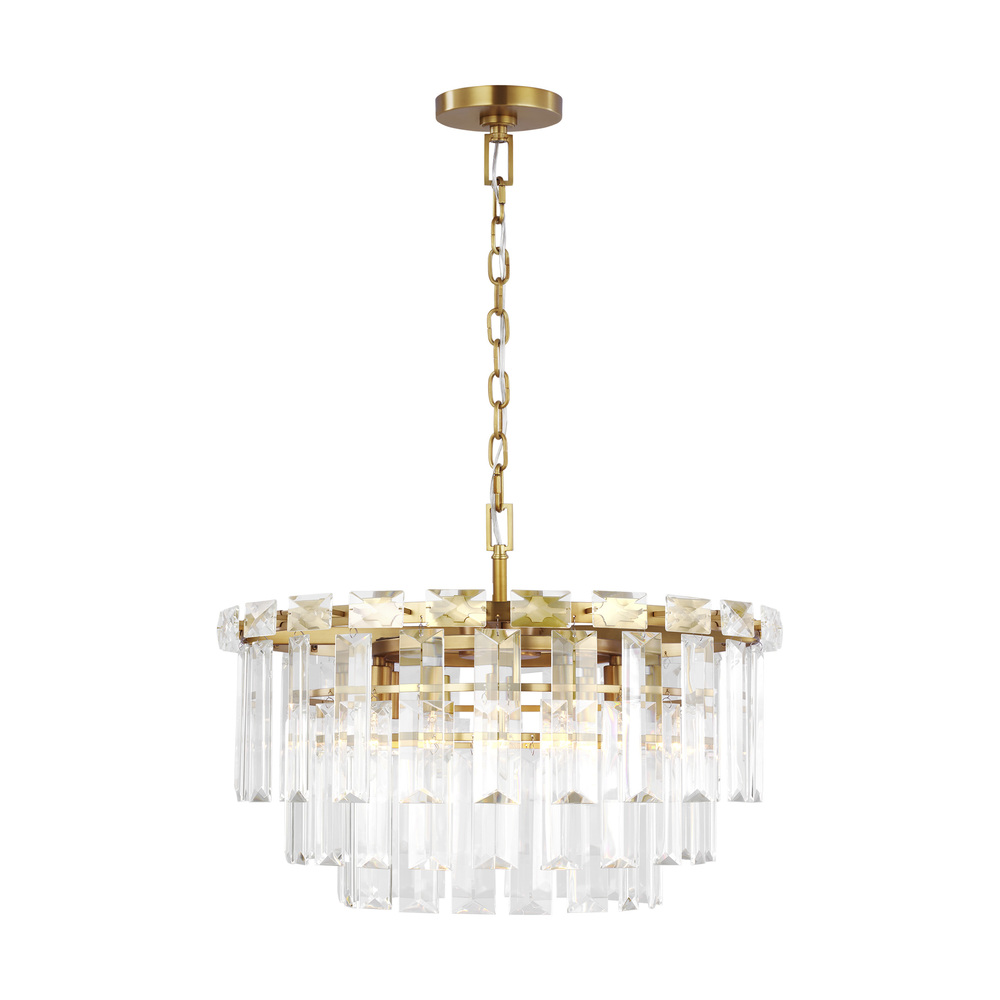 Inspired by the Art Deco style of 1920s Paris, the Arden series from C&M by Chapman and Myers captures the period's fascination with geometric forms. A stunning addition to an entryway, great room, or above a large dining table, the Arden tiered chandelier features panels of textured glass that hang in linear architectural tiers from a solid metal frame.