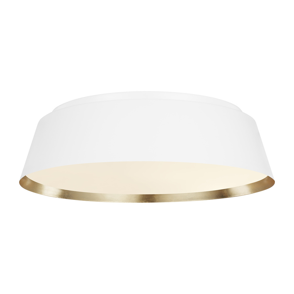The Asher flush mount from Ellen DeGeneres is the perfect way to achieve your desired fashion or functional needs in your home. Asher is contemporary with time-honored appeal in a low profile, yet large-scale silhouette that exudes understated elegance. Available in either a Midnight Black or Matte White exterior finish, both versions utilize an artisanal, hand-applied treatment of real gold leaf that lines the interior of the shade while a silk screen glass diffuser softens the illumination.