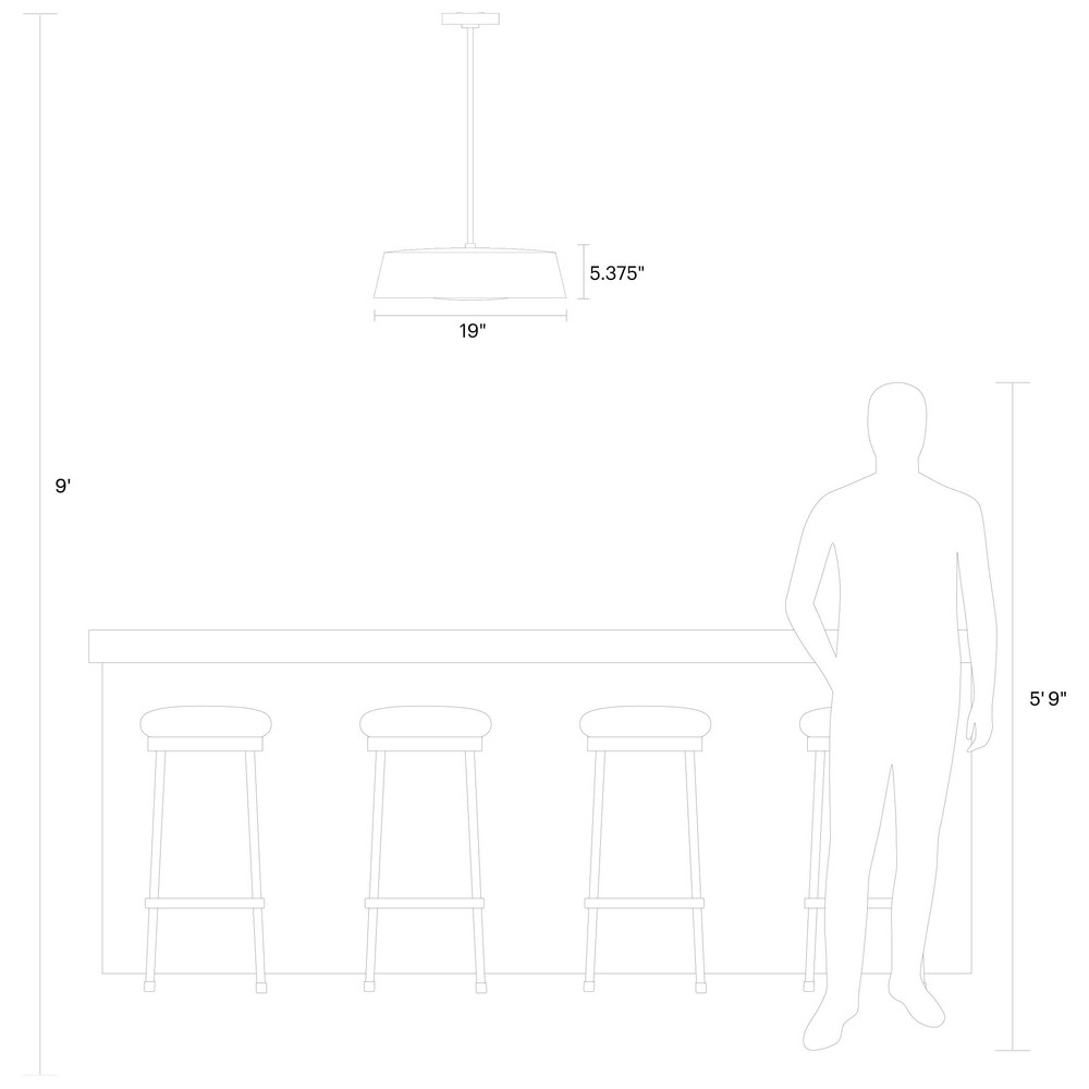The Asher five-light indoor pendant in midnight black provides abundant light to your home, while adding style and interest. The Asher is contemporary with time-honored appeal in a low profile, yet large-scale silhouette that exudes understated elegance. Available in either a Midnight Black or Matte White exterior finish, both versions utilize an artisanal, hand-applied treatment of real gold leaf that lines the interior of the shade while a silk screen glass diffuser softens the illumination.