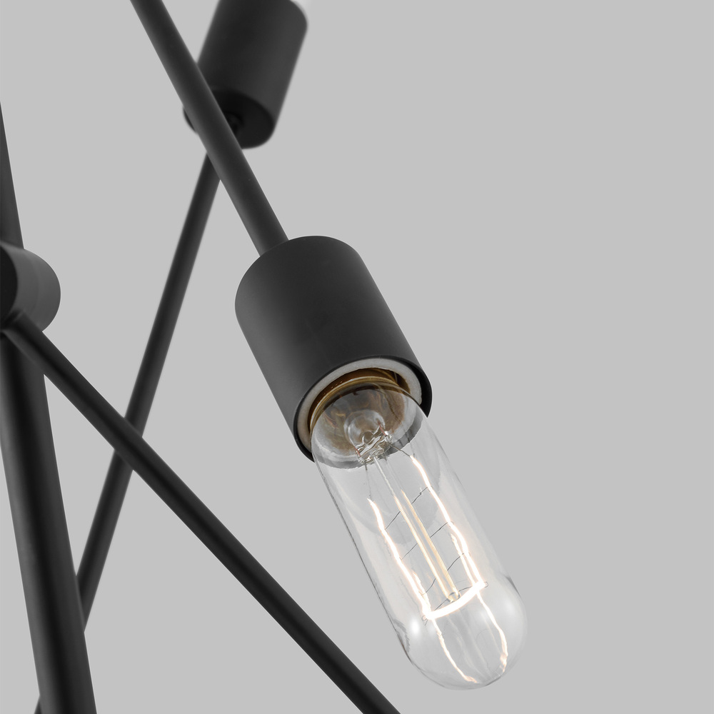 Axis is a simple and refined industrial design where form and function are the design elements. Fully articulating arms make this a truly versatile collection. The arms meet at fully pivotable mechanisms, arms can be adjusted before or after the fixture is installed, to fit a tall foyer or have a low and wide horizontal chandelier.