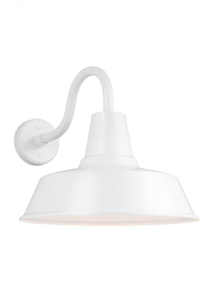 The Barn Light one light outdoor wall fixture in white creates a warm and inviting welcome presentation for your home's exterior. The classic Barn Lights are hand crafted in aluminum and coated in a Galvanized or Blacksmith finish. Ideal for large or heavily trafficked outdoor areas that need plenty of downward directed light. The oversized Barn Lights make great accents to any commercial lighting plan or residential garage entry, shed, or patio. To customize your look, a 6" extender is included with every fixture. Also available as Dark Sky with four size options to choose from.