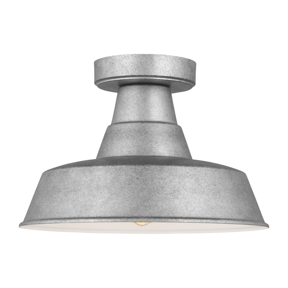 The Barn Light one light outdoor ceiling fixture in weathered pewter creates a warm and inviting welcome presentation for your home's exterior. The classic Barn Lights are hand crafted in aluminum and coated in a Galvanized or Blacksmith finish. Ideal for large or heavily trafficked outdoor areas that need plenty of downward directed light. The oversized Barn Lights make great accents to any commercial lighting plan or residential garage entry, shed, or patio. To customize your look, a 6" extender is included with every fixture. Also available as Dark Sky with four size options to choose from.
