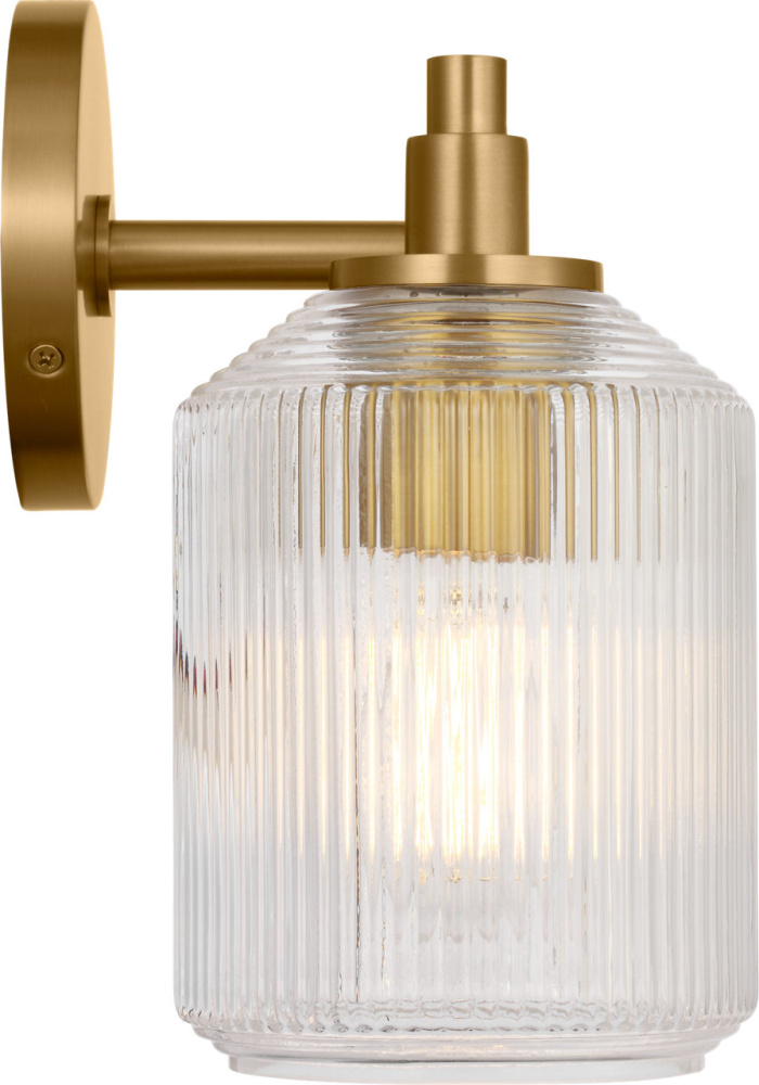 Inspired by a vintage piece of factory glass, the Barstow 15" Vanity by Chapman & Myers balances industrial heritage With modern refinement. The ribbed clear glass shade, defined by vertical and horizontal cuts, offers a jewel-like texture that catches and diffuses light With elegance. A streamlined metal frame enhances the fixture’s clean lines, making the 15" profile perfect for single vanities, guest bathrooms, or layered installations. Barstow’s thoughtful detailing and timeless simplicity elevate everyday interiors With subtle architectural presence.