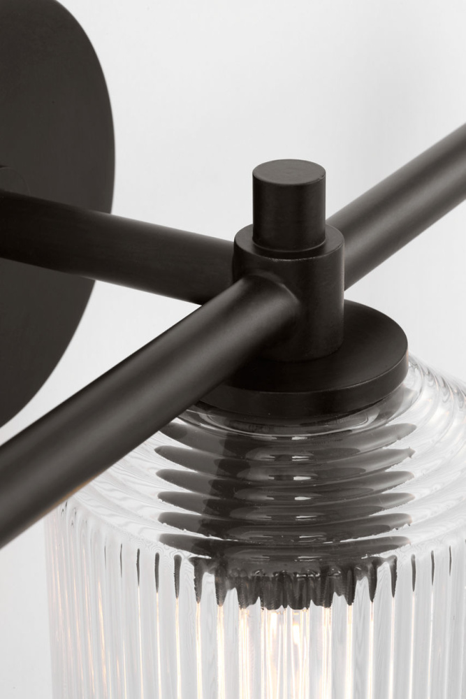 The Barstow 26" Vanity by Chapman & Myers brings the full expression of the collection’s prismatic inspiration to larger bath environments. Its ribbed clear glass shade—cut vertically around the body and horizontally at the top and base—delivers a refined, finished appearance that feels both classic and contemporary. Framed by a minimal metal structure, the 26" fixture is ideal for double-sink vanities or expansive layouts, where its sculptural glass and clean lines create a focal point of quiet elegance and enduring style.
