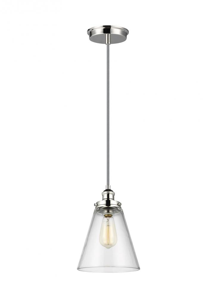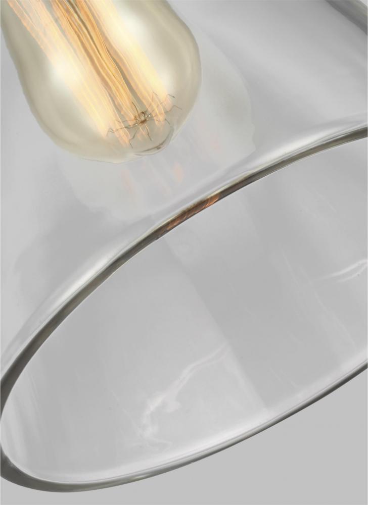 The Baskin lighting collection is an ultra-clean, modern take on the classic antique socket pendant light. In three, iconic silhouettes (cone, chimney and dome), the Clear Thick glass 1-light pendants bring warmth and sparkle, while beautifully complementing all types of surroundings. The finishes offered include Polished Nickel for a more contemporary feel, as well as a unique combination of Painted Aged Brass with Dark Weathered Zinc which works well in a more rustic decor. Within the sleek and elegant shades, an incandescent Edison-style lamp (not included) becomes a dramatic focal point.