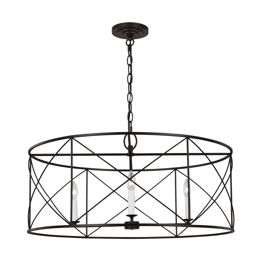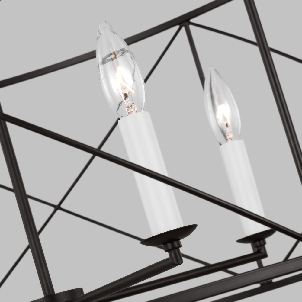 The Beatrix series by Chapman & Myers is open-caged design chandelier adding a bright light to any modern farmhouse home decor. It features white candelabra candle holder and refined finishes, showing a classic and rustic flair. Each lantern has a distinctive X cross detailing on their frame which adds both strength and visual interest. Ideal for over a kitchen island or dining room table.