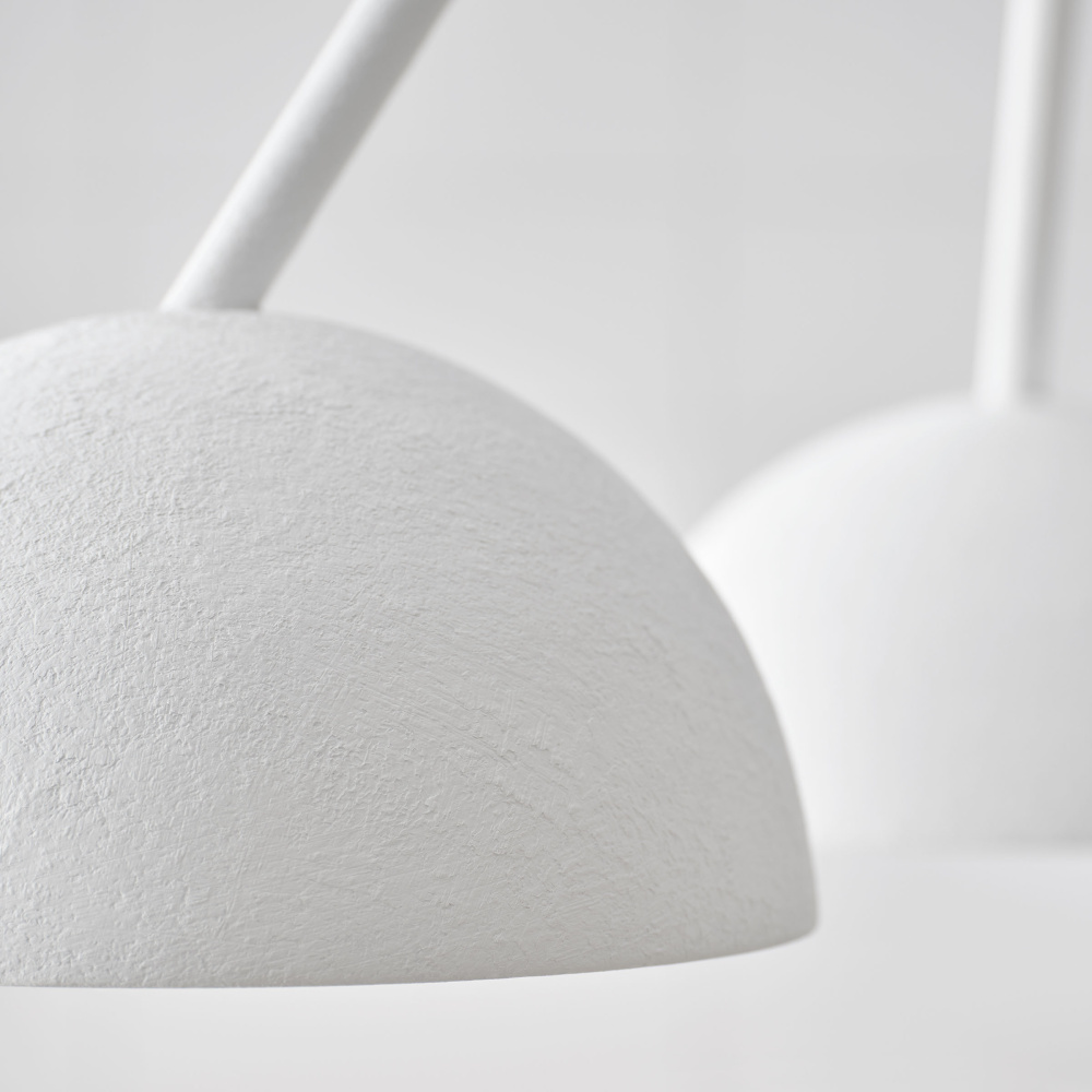 Designed by Christiane Lemieux, the Beaunay three light single tier chandelier in cast plaster is a versatile piece can be used anywhere. Featuring round, bowl-like shades, Beaunay reflects 1920's - 40's European design influences, everything from art deco through to Italian midcentury – even the classic torchieres by Serge Roche. This series includes 2 chandeliers, a pendant and 2 wall sconces, all available in a Cast Plaster finish which gives a beautiful hand-crafted look.