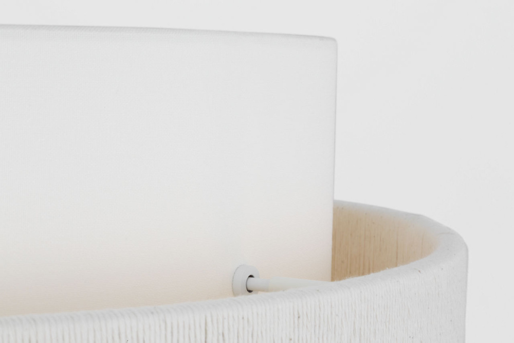White linen drum shade With textural fabric wrap detail