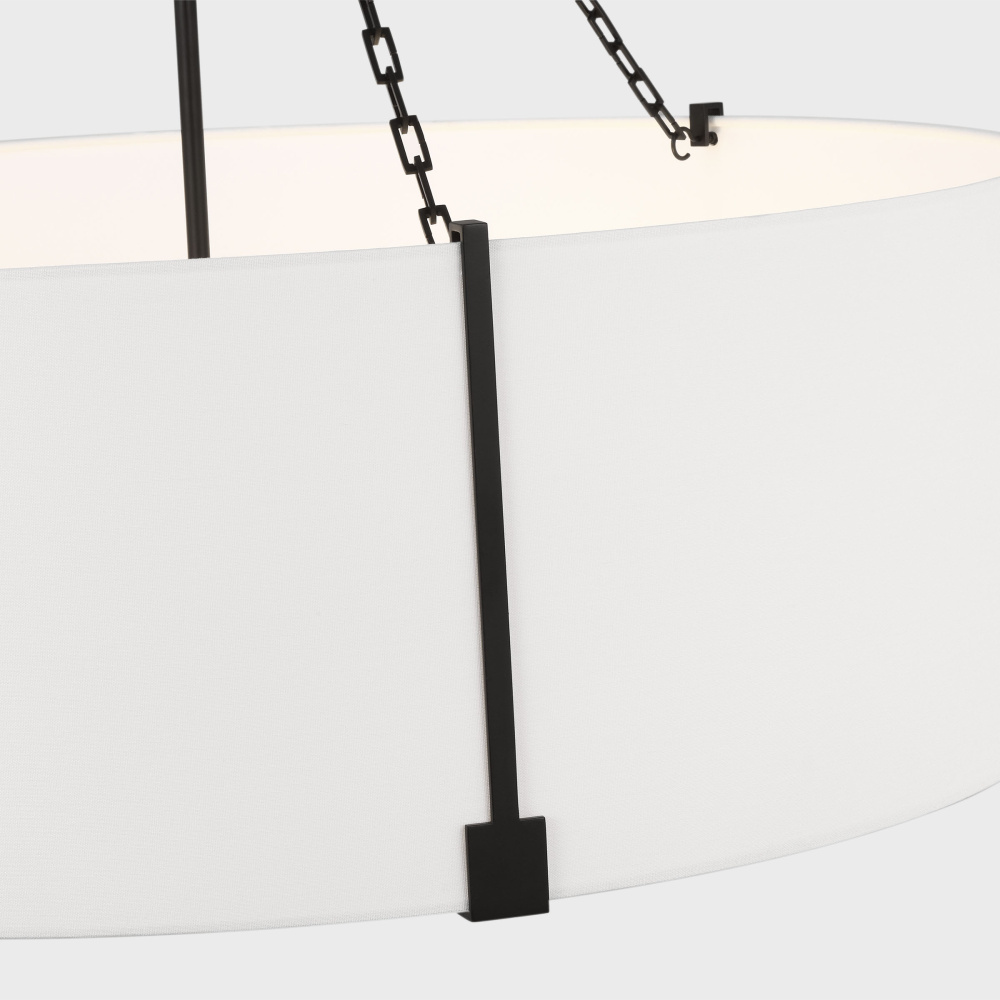 Crafted with Steel in a Aged Iron finish with white linen shade