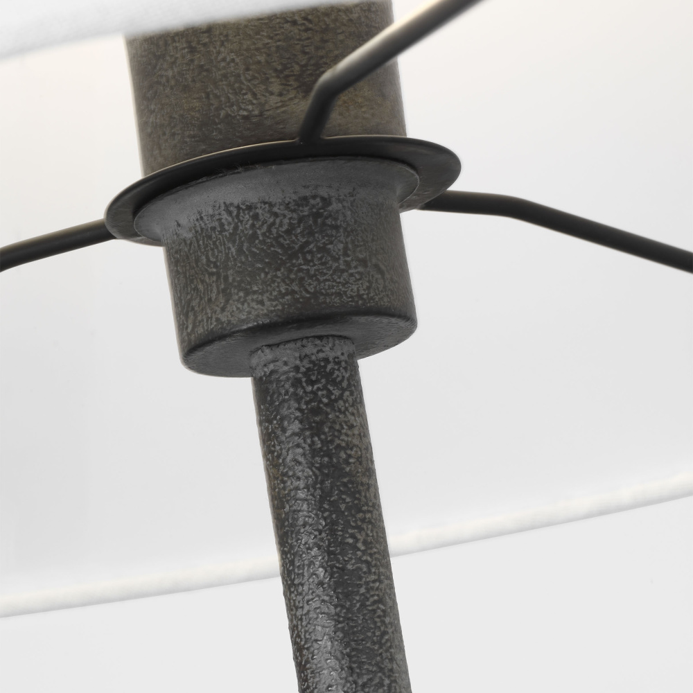 Crafted with Steel in a Black Pearl finish with white linen fabric shade