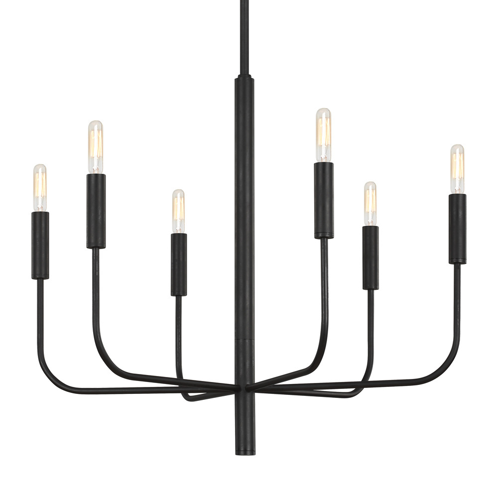 The Brianna six light single tier chandelier in aged iron is the perfect way to achieve your desired fashion or functional needs in your home. Brianna's graceful, seamless curvature and elongated tubular arms lend fluidity and modern appeal to this classic minimalist silhouette. Available in rich, gilded Burnished Brass and the more contemporary Polished Nickel finish. Brianna wall sconces include cylindrical shades in fresh White Linen.