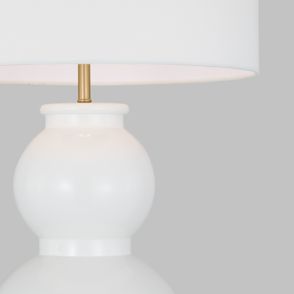 Designed by Drew & Jonathan Scott, Buckley is a classic gourd-style table lamp series in three saturated hues. Symmetrical lines give the traditional shape a modern look. Each is topped with a beautiful white linen shade; these table lamps are crafted of glass in three finishes that flow to the base.