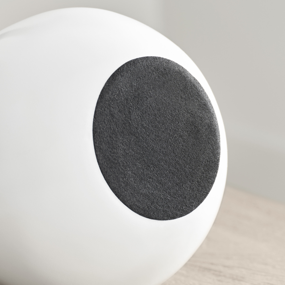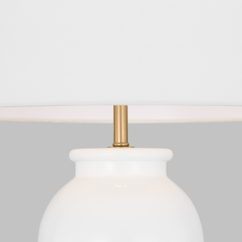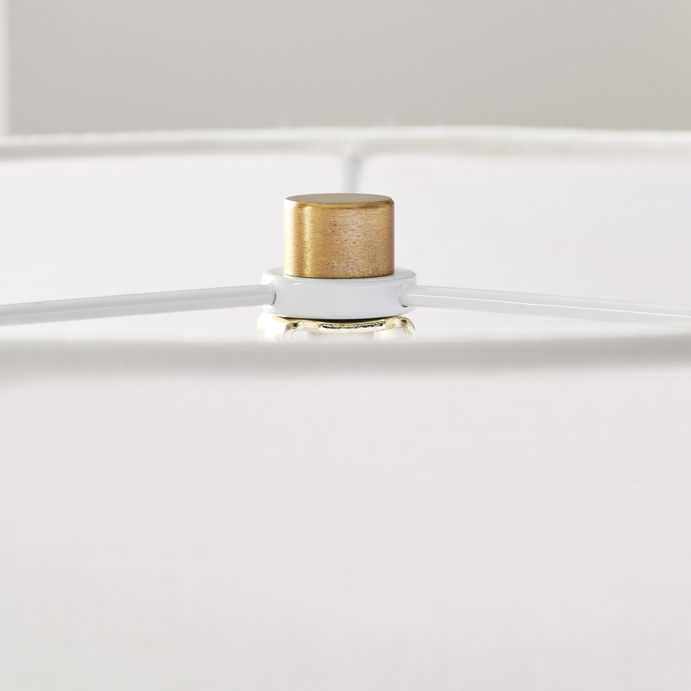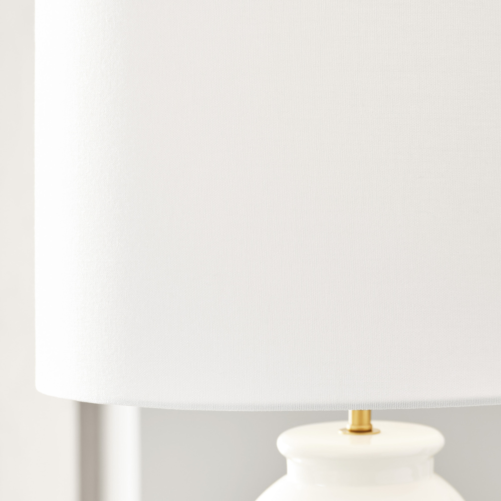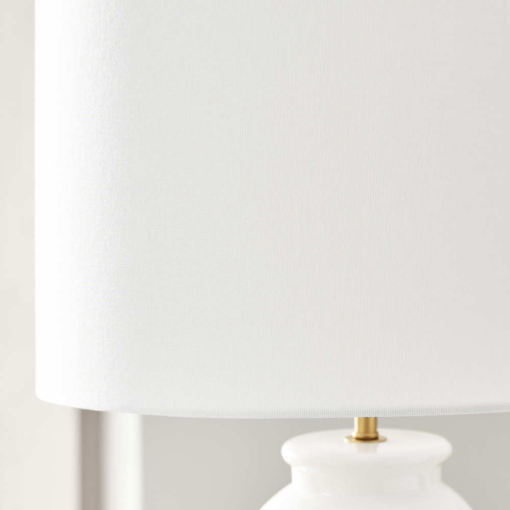 Features a symmetrical body highlighted by a white fabric linen shade