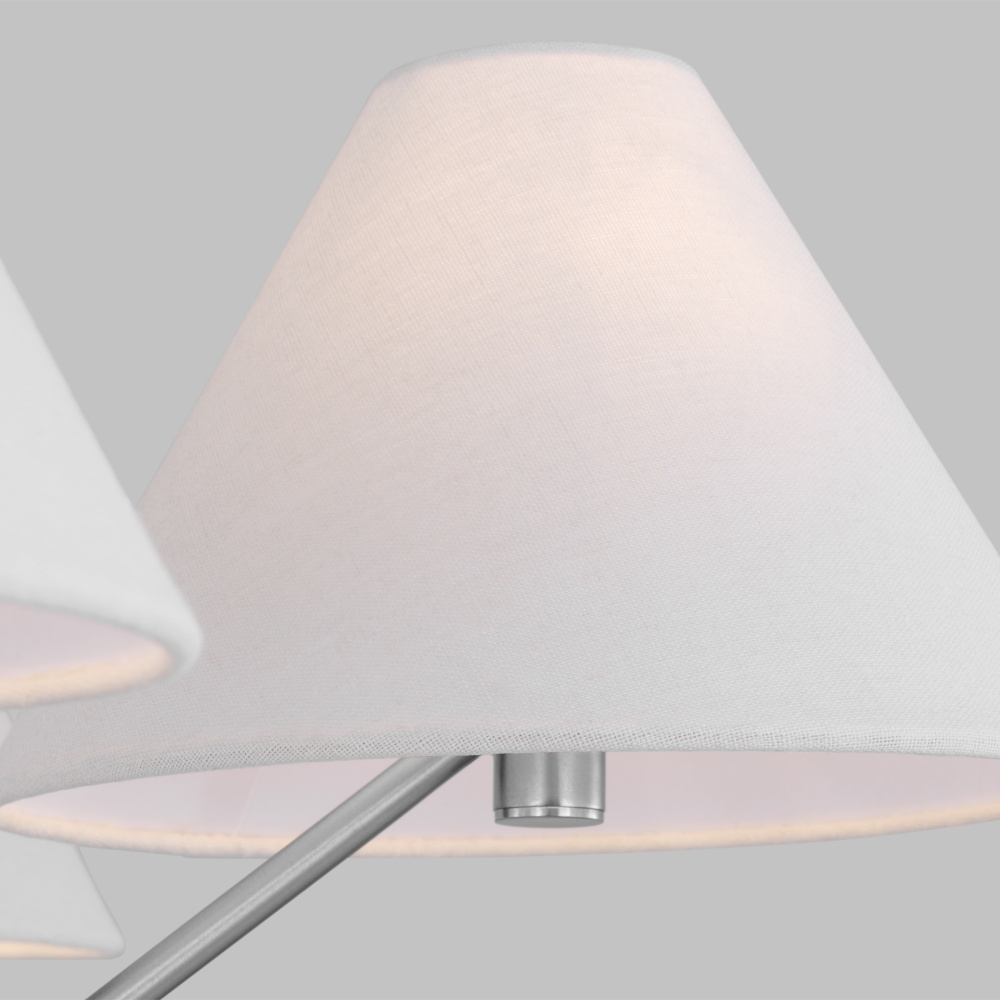 Designed by Drew & Jonathan Scott, the Burke series is a contemporary interpretation of a classic mid-century style. The bent arm and concealed socket highlight the minimalist aesthetic allowing this to be placed in a variety of spaces. A cone-shaped white fabric shade tops the bulb exuding a soft, ambient glow that is perfect for kitchens, dining rooms, or living rooms.