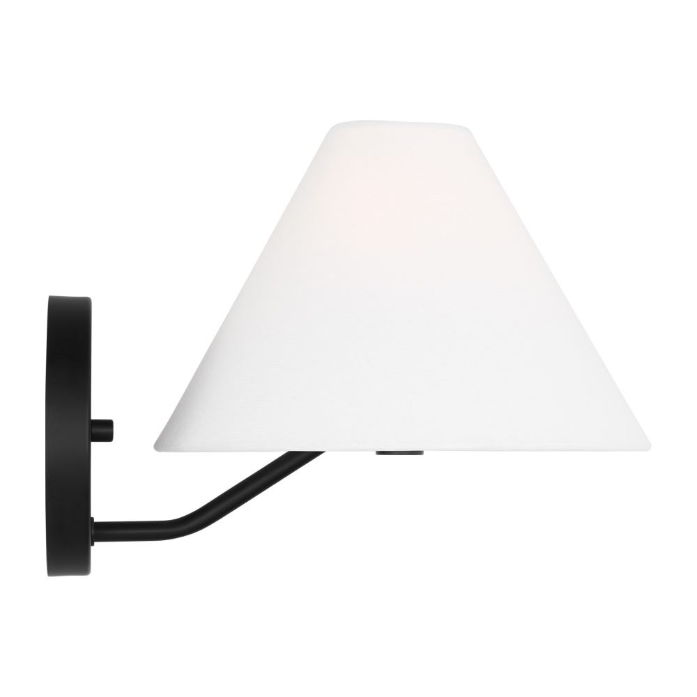 Designed by Drew & Jonathan Scott, the Burke series is a contemporary interpretation of a classic mid-century style. The bent arm and concealed socket highlight the minimalist aesthetic allowing this to be placed in a variety of spaces. A cone-shaped white fabric shade tops the bulb exuding a soft, ambient glow that is perfect for bathrooms, bedroom or hallways.