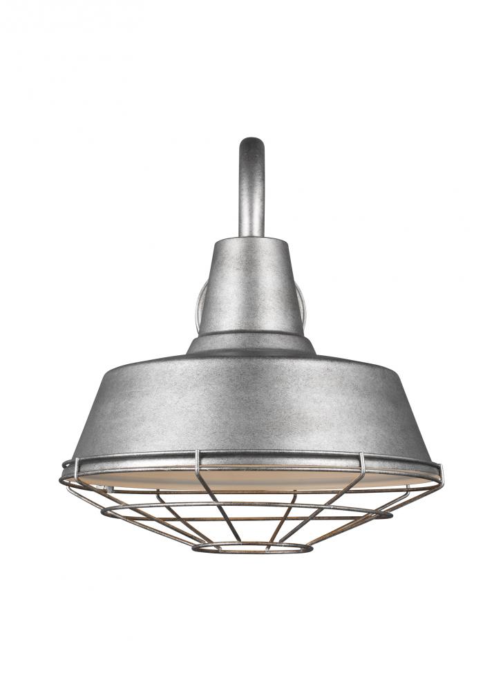 The classic Barn Lights are hand crafted in aluminum and coated in a Galvanized or Blacksmith finish. Ideal for large or heavily trafficked outdoor areas that need plenty of downward directed light. The oversized Barn Lights make great accents to any commercial lighting plan or residential garage entry, shed, or patio. To customize your look, a 6" extender is included with every fixture. Also available as Dark Sky with four size options to choose from.