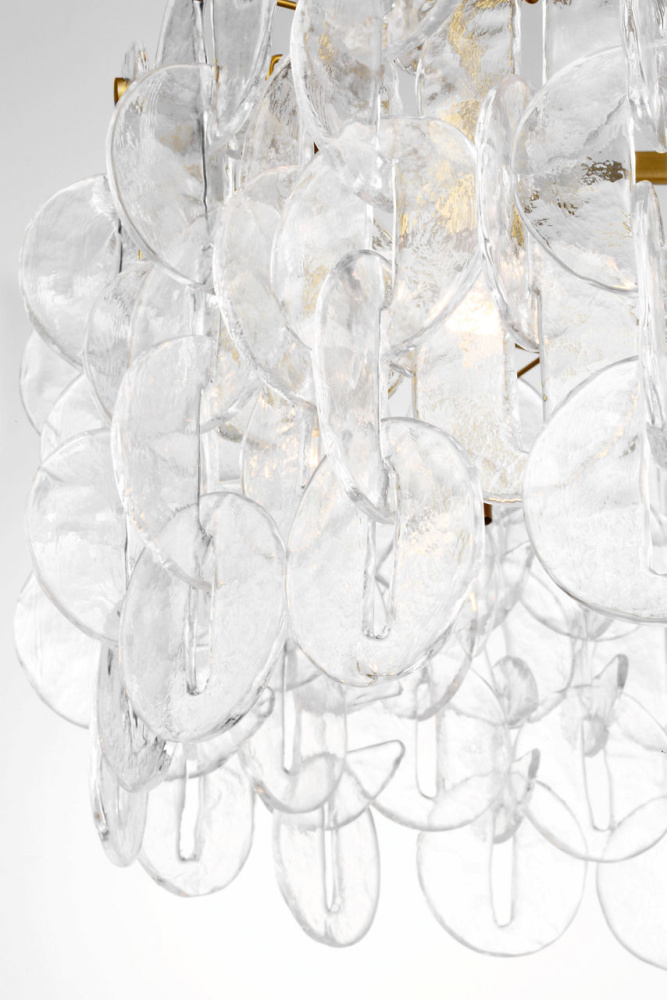 Interlocking hand-poured textured glass discs arranged in a cascading, layered form
