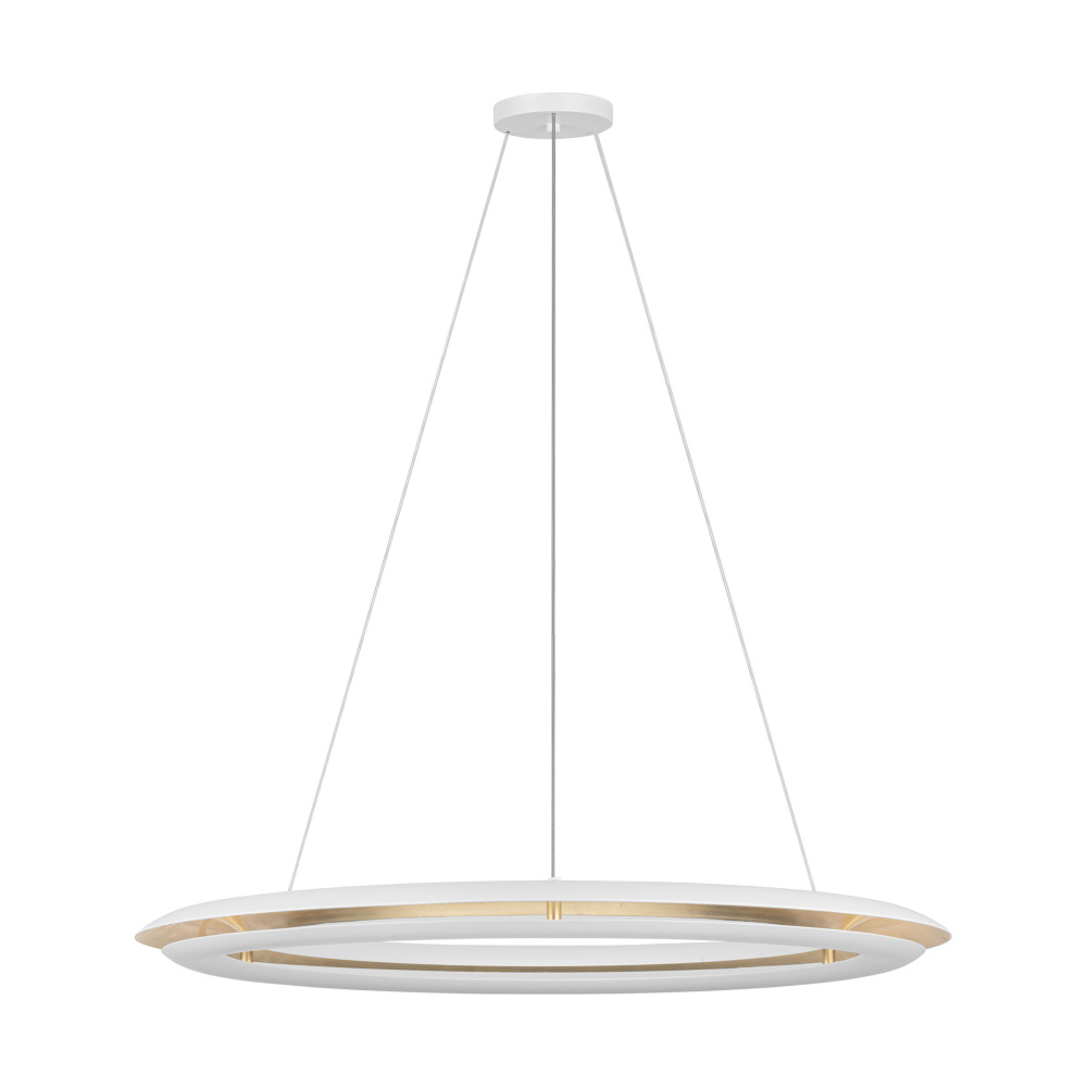 Inspired by the Spanish word for sky, the Cielo ring chandelier by Chapman & Meyers has a convex profile and emits a soft halo-like glow. The lower of the two curved metal bands conceals the upward-shining LED light source, while the upper band and the gilded interior surfaces reflect the light. Suspended by 3 delicate steel cables, the Cielo chandelier will complement modern living and dining rooms, bedrooms, hallways and entryways.