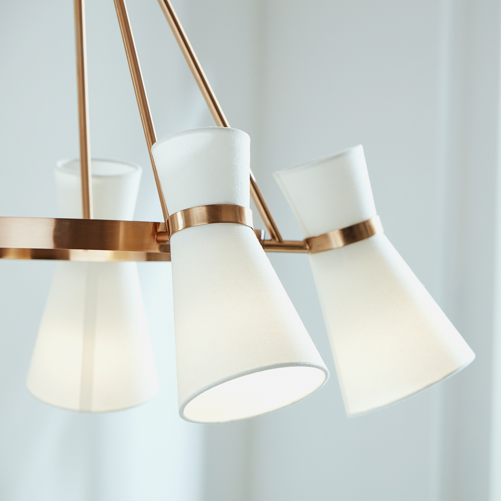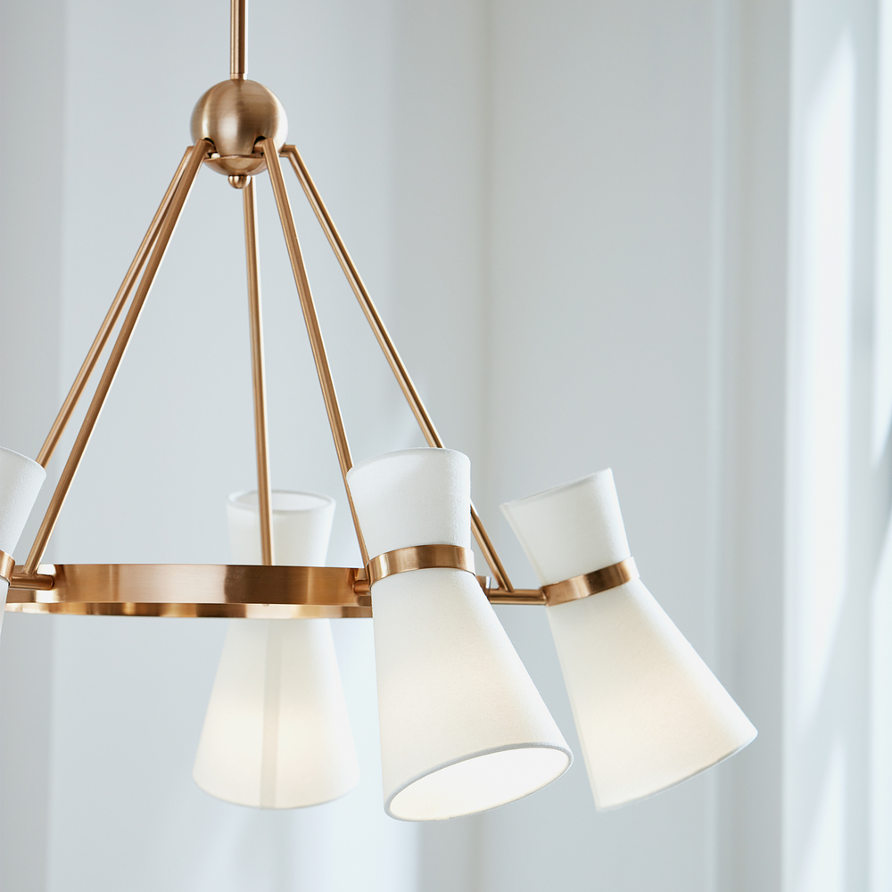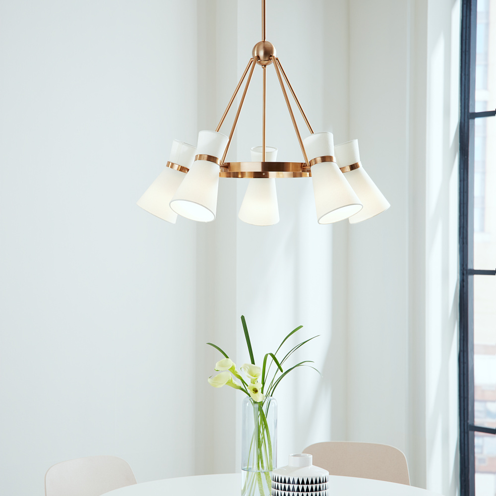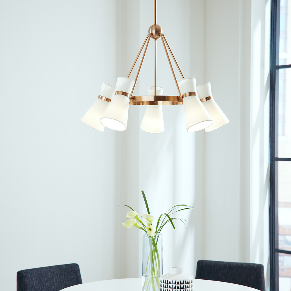The Clark five light single tier chandelier in satin brass is the perfect way to achieve your desired fashion or functional needs in your home.