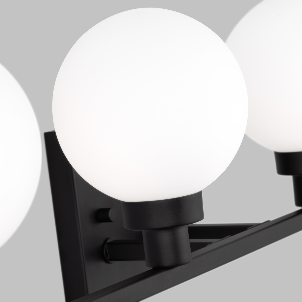 The Clybourn four light vanity fixture in Midnight Black is an industrial yet minimalist design, making this fixture perfect for an eclectic living room or over a modern dining room table. Milk Glass gives the Clybourn series a more current look.