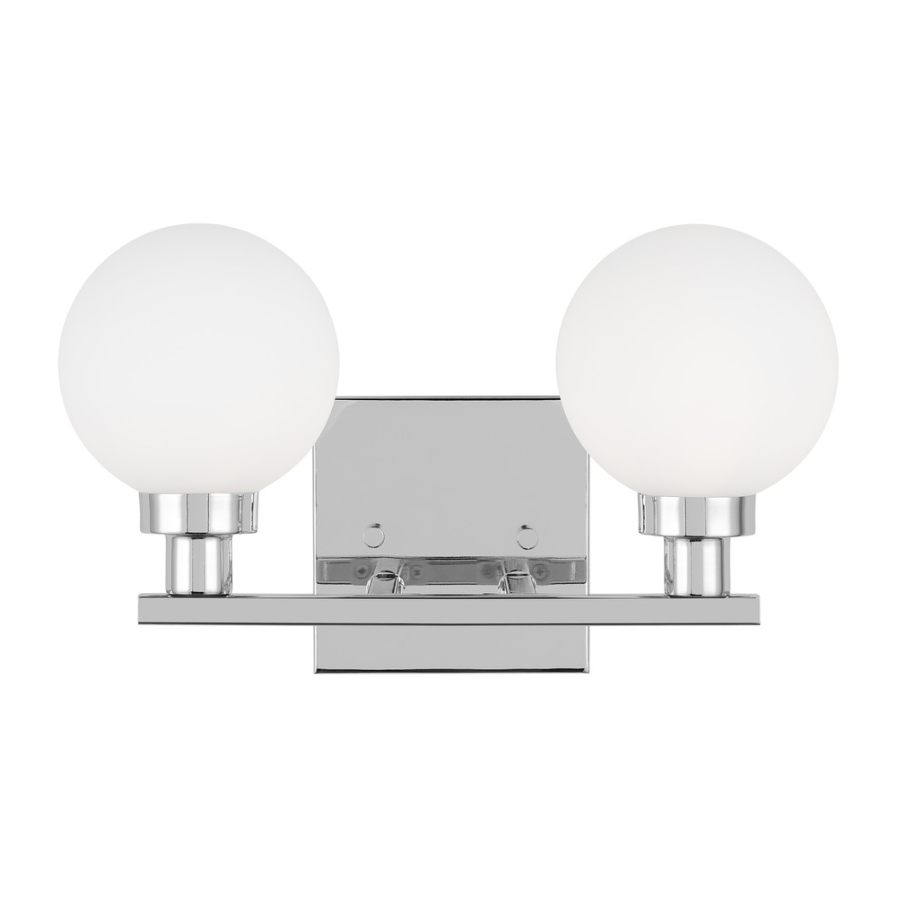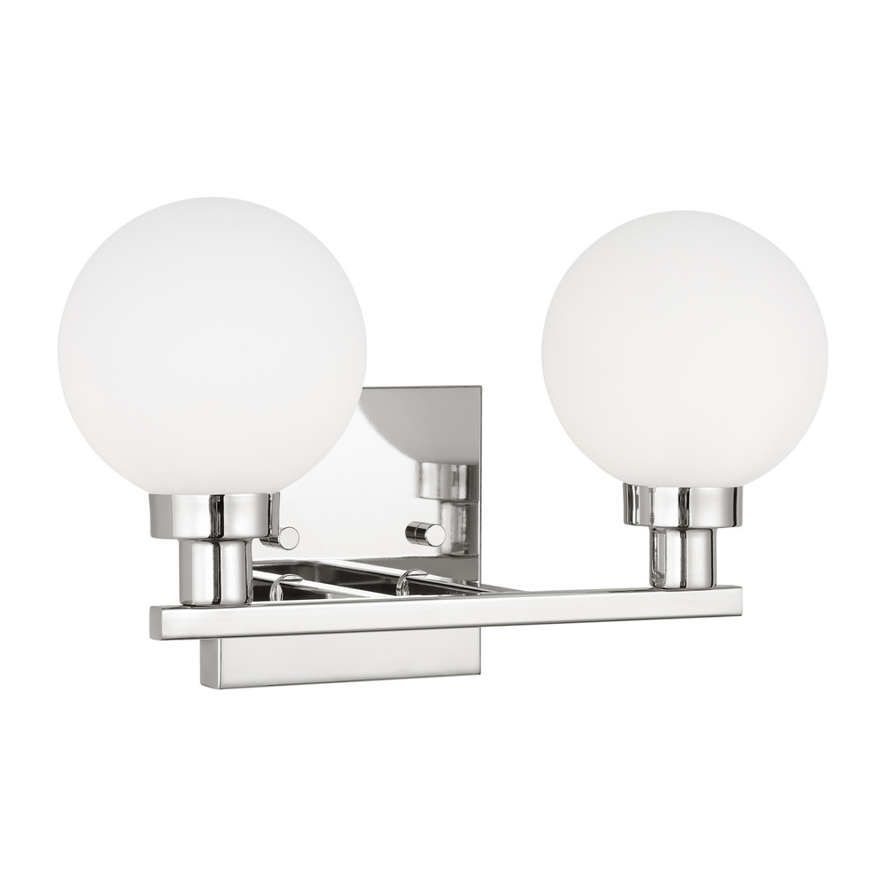 The Clybourn two light vanity fixture in Chrome is an industrial yet minimalist design, making this fixture perfect for an eclectic living room or over a modern dining room table. Milk Glass gives the Clybourn series a more current look.