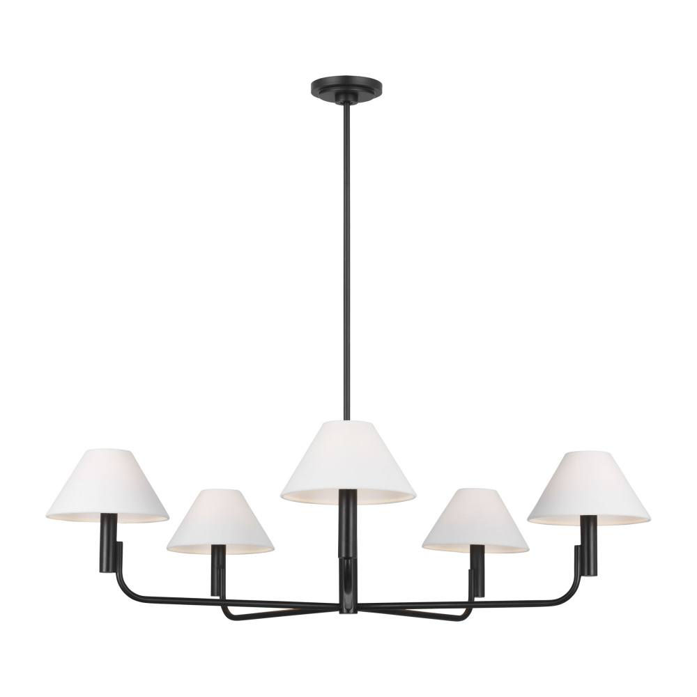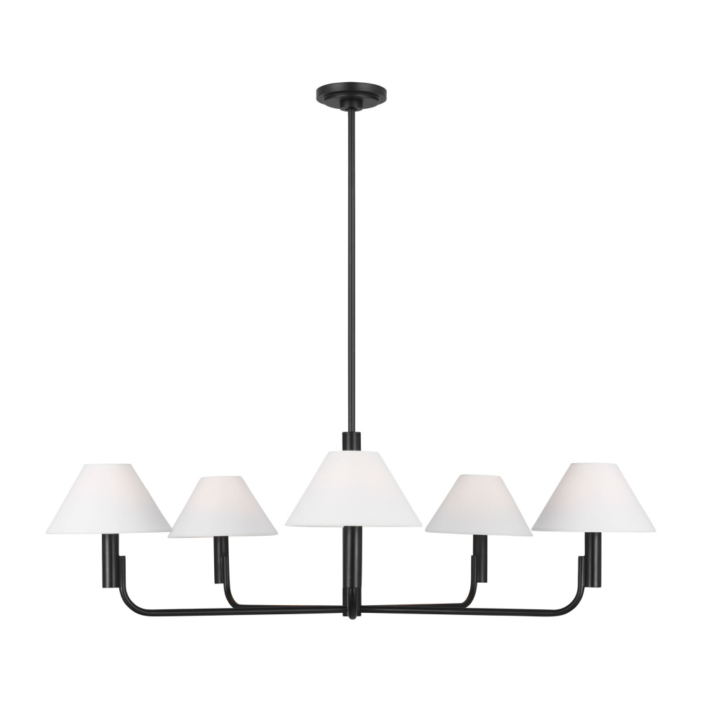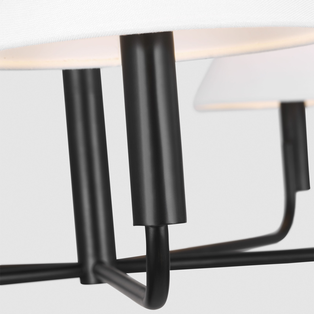Elegant and modern the Colfax series by Sean Lavin features simple lines with unexpected details. From the stepped canopy to the offset candle tube and angled linen shades, the silhouettes will effortlessly accent interior decor styles of any aesthetic. The Colfax chandelier has a low, wide profile allowing it to hang in dining rooms of any size.