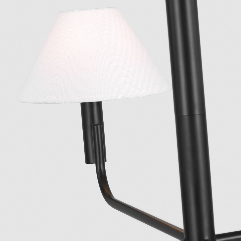 Crafted with Steel in a Aged Iron finish with white linen shades