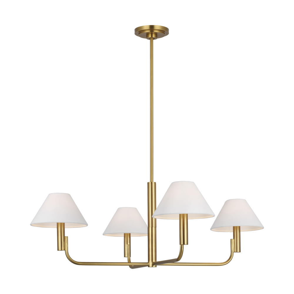 Elegant and modern the Colfax series by Sean Lavin features simple lines with unexpected details. From the stepped canopy to the offset candle tube and angled linen shades, the silhouettes will effortlessly accent interior decor styles of any aesthetic. The Colfax chandelier has a low, wide profile allowing it to hang in dining rooms of any size.