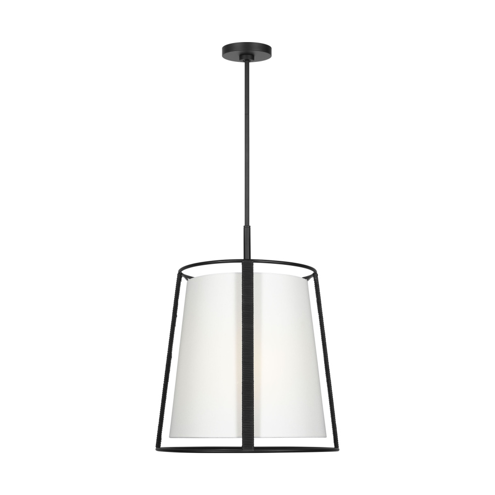 The Cortes series by Drew & Jonathan is the perfect addition to any home with minimalist or natural fiber decor. A sophisticated, finish complements the Midnight Black metal l used to line the white linen shade.