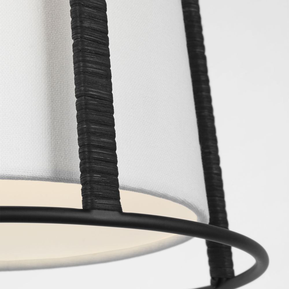 The Cortes series by Drew & Jonathan is the perfect addition to any home with minimalist or natural fiber decor. A sophisticated, finish complements the Midnight Black metal l used to line the white linen shade.