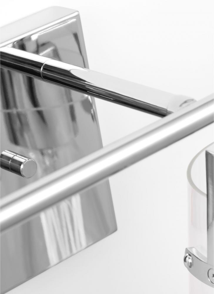 Made to coordinate across a broader range of bath hardware and design styles, this light adds bright light where you need it most with its clear glass shades and sleek metal backplate in striking, modern finishes