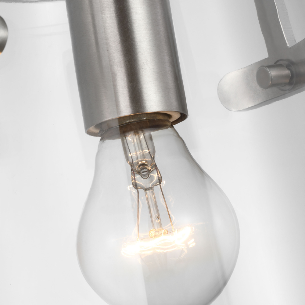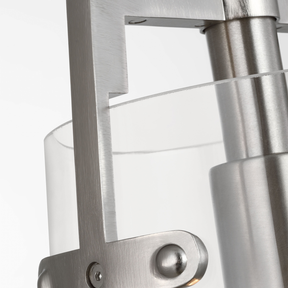 Crafted with Steel in a Brushed Nickel finish with clear glass shade